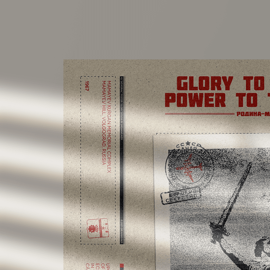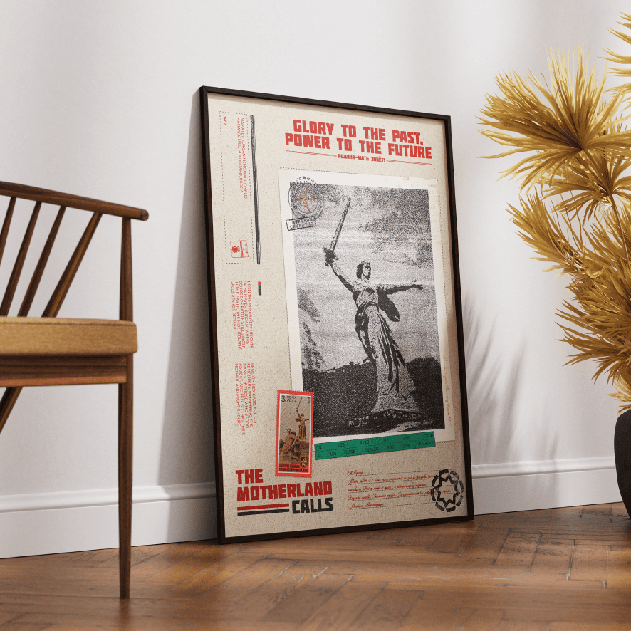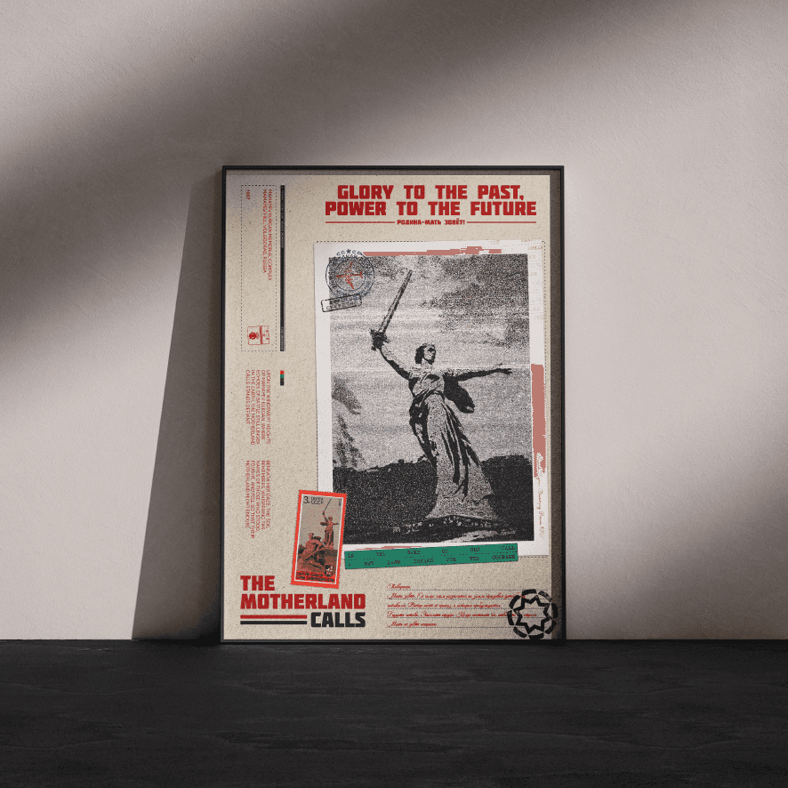 This poster pays tribute to The Motherland Calls Sculpture, honoring the weight of history and glory of the past.